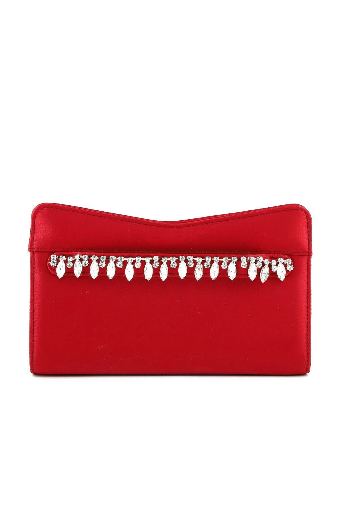 This red clutch is made with the fully embellished oval shape over a solid frame...
