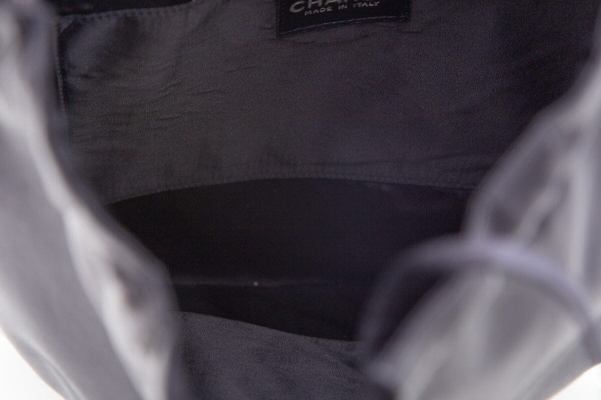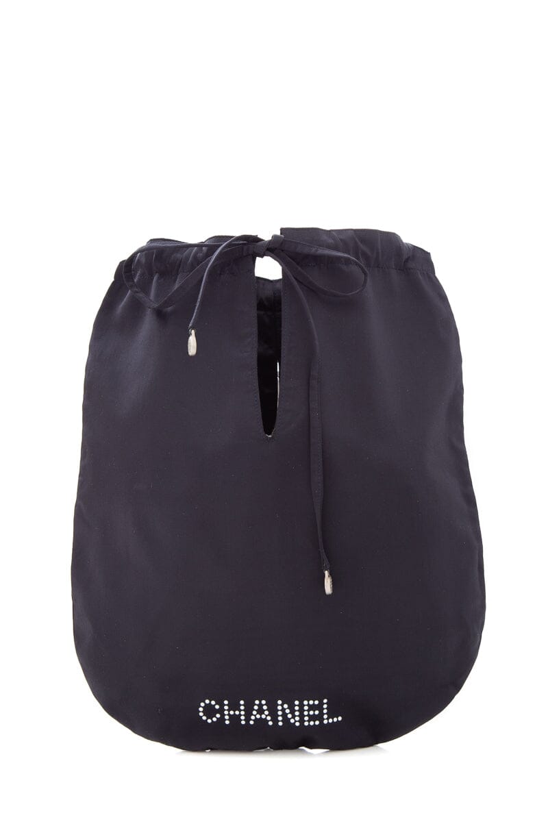 Chanel Black Satin & Pearl Stud Detail Handbag