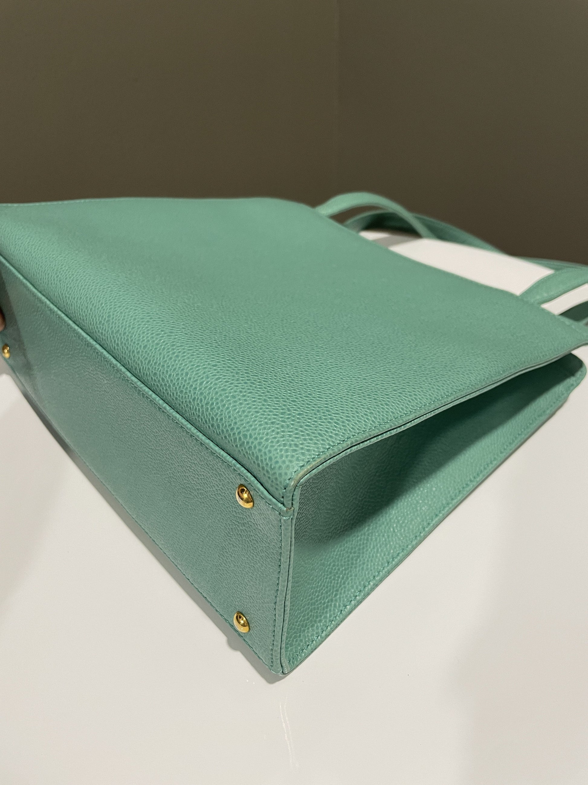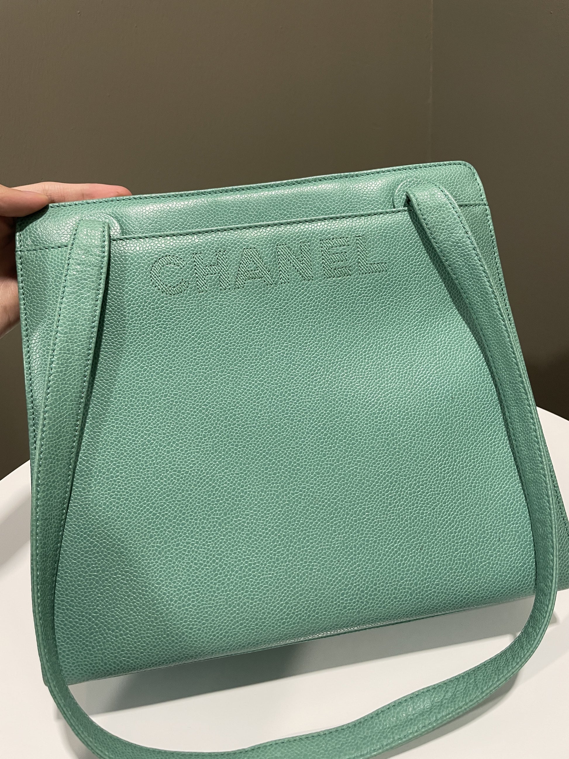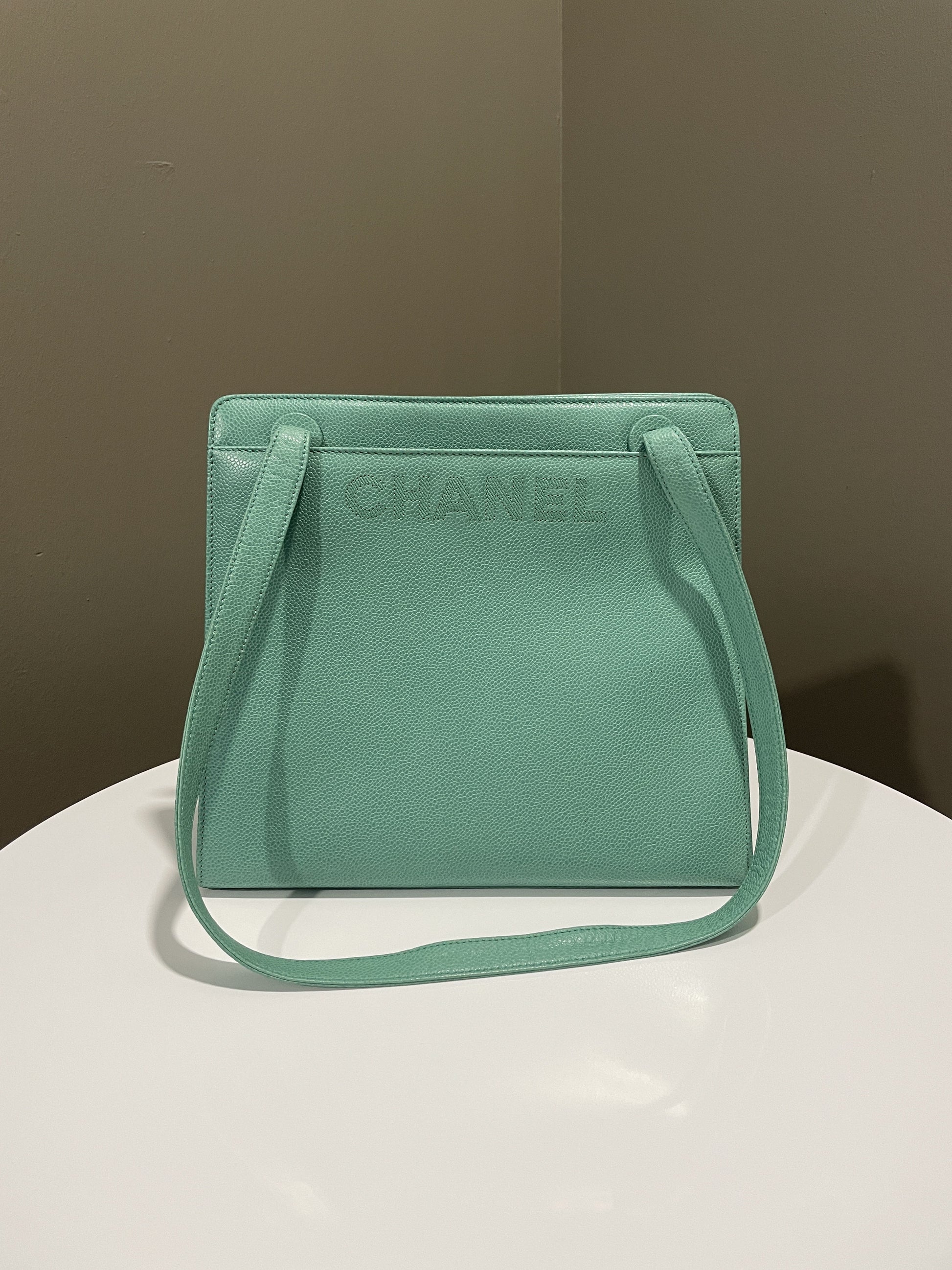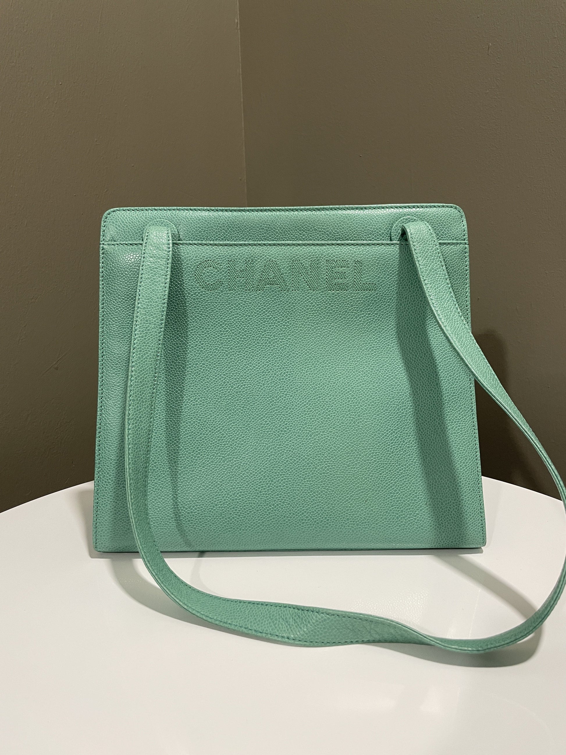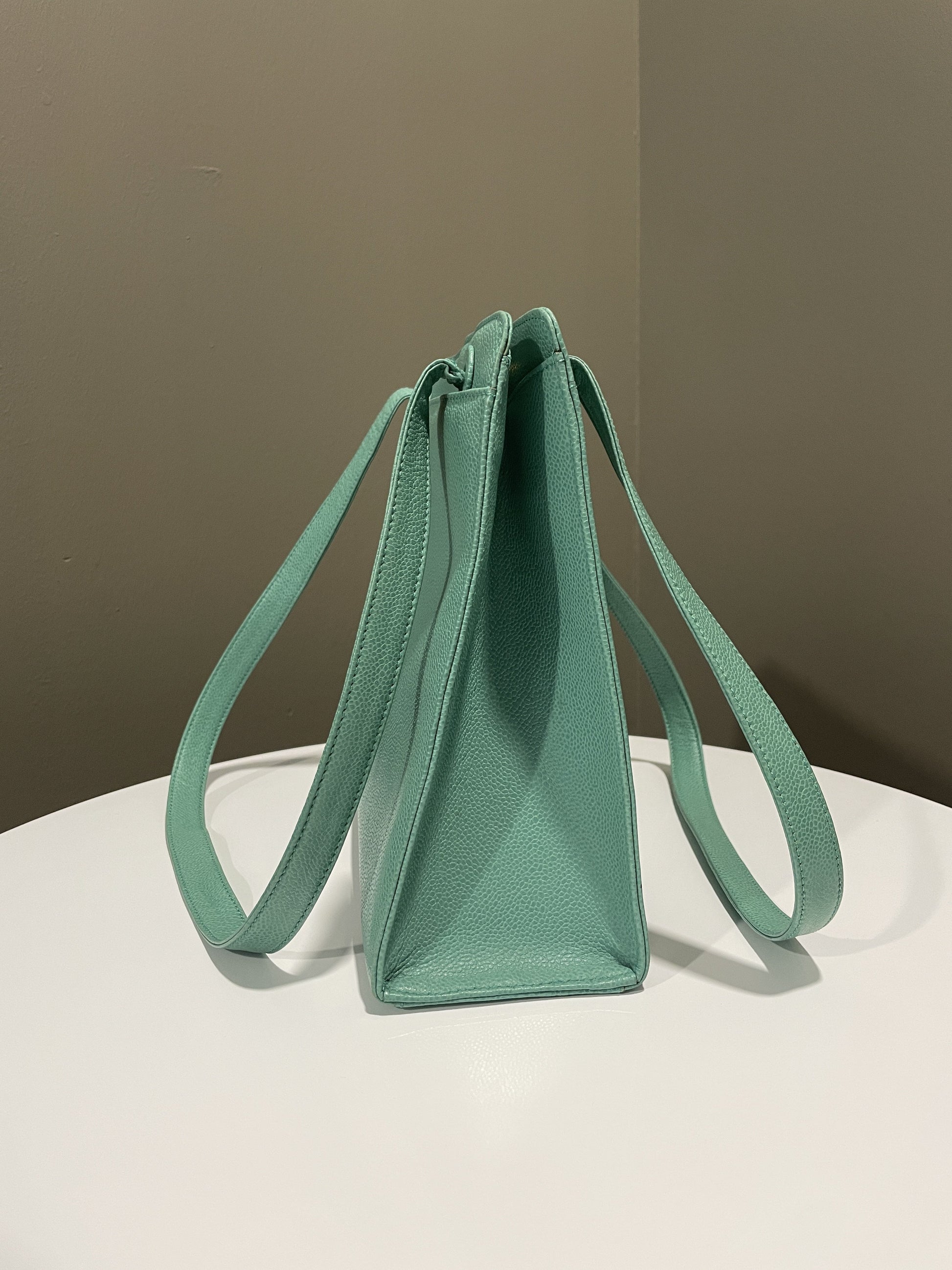 Chanel Vintage Shoulder Tote Bag Mint Caviar