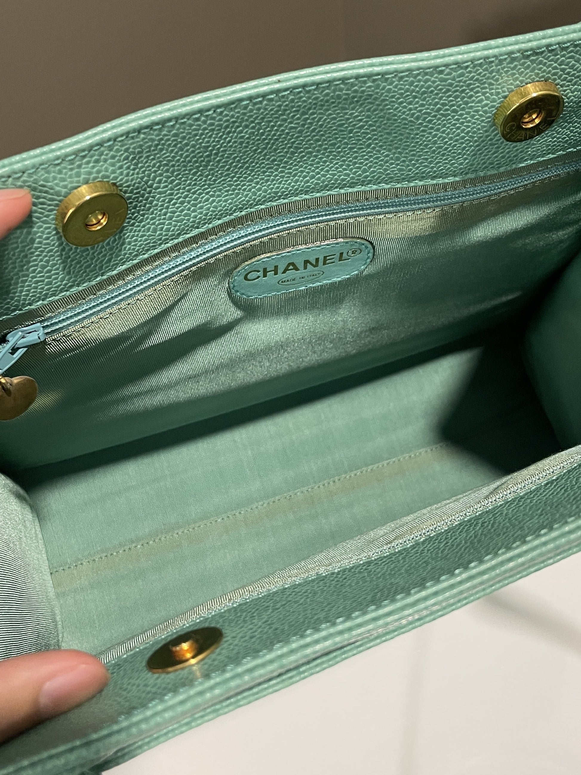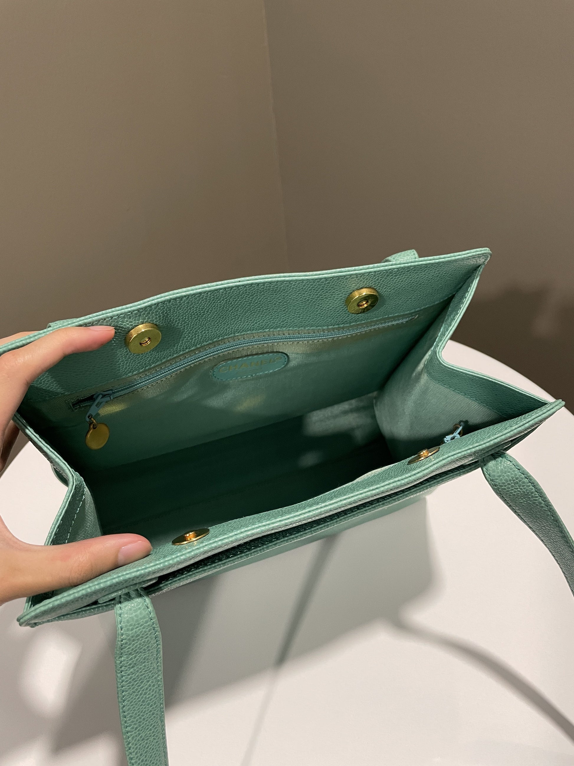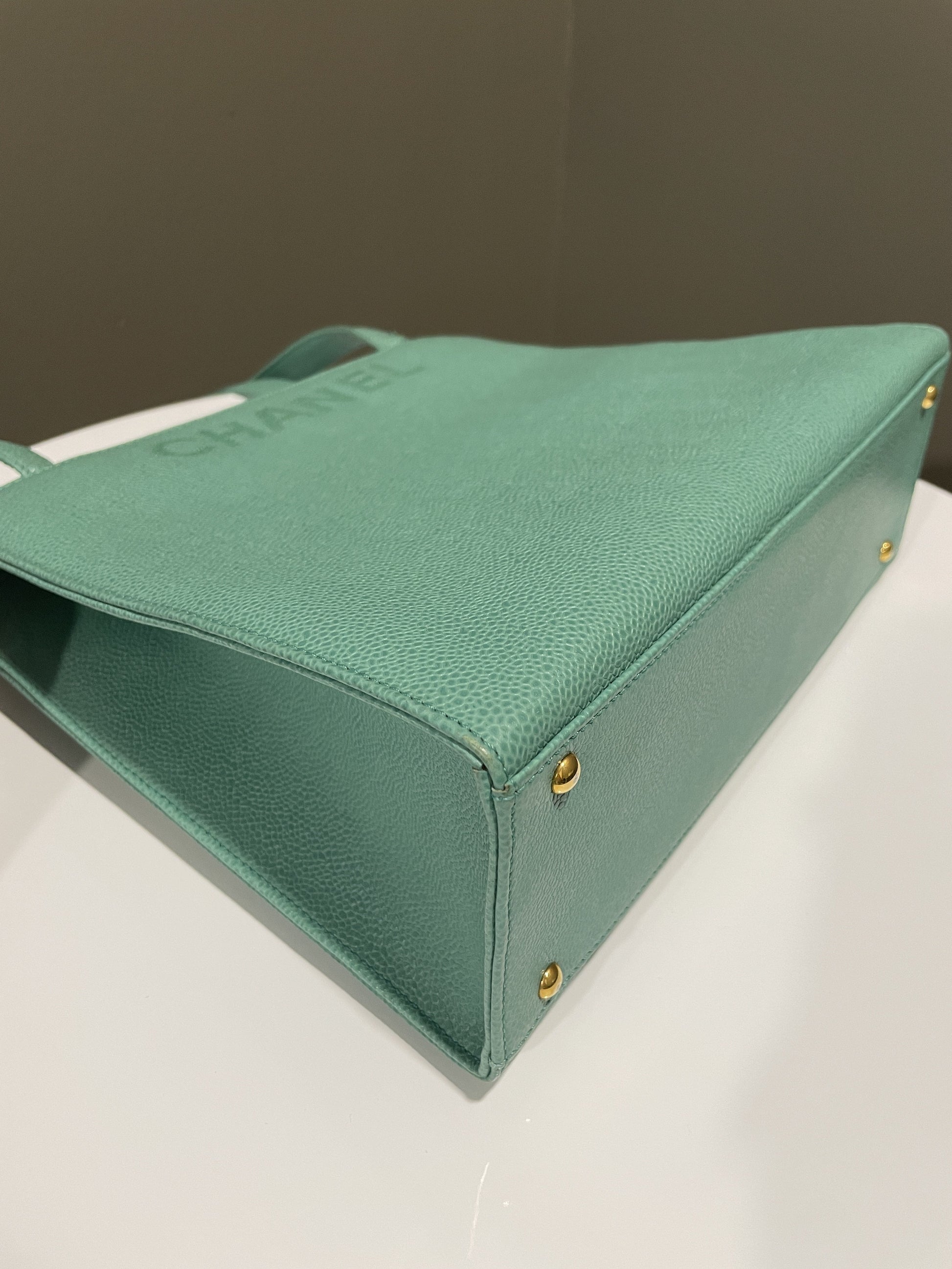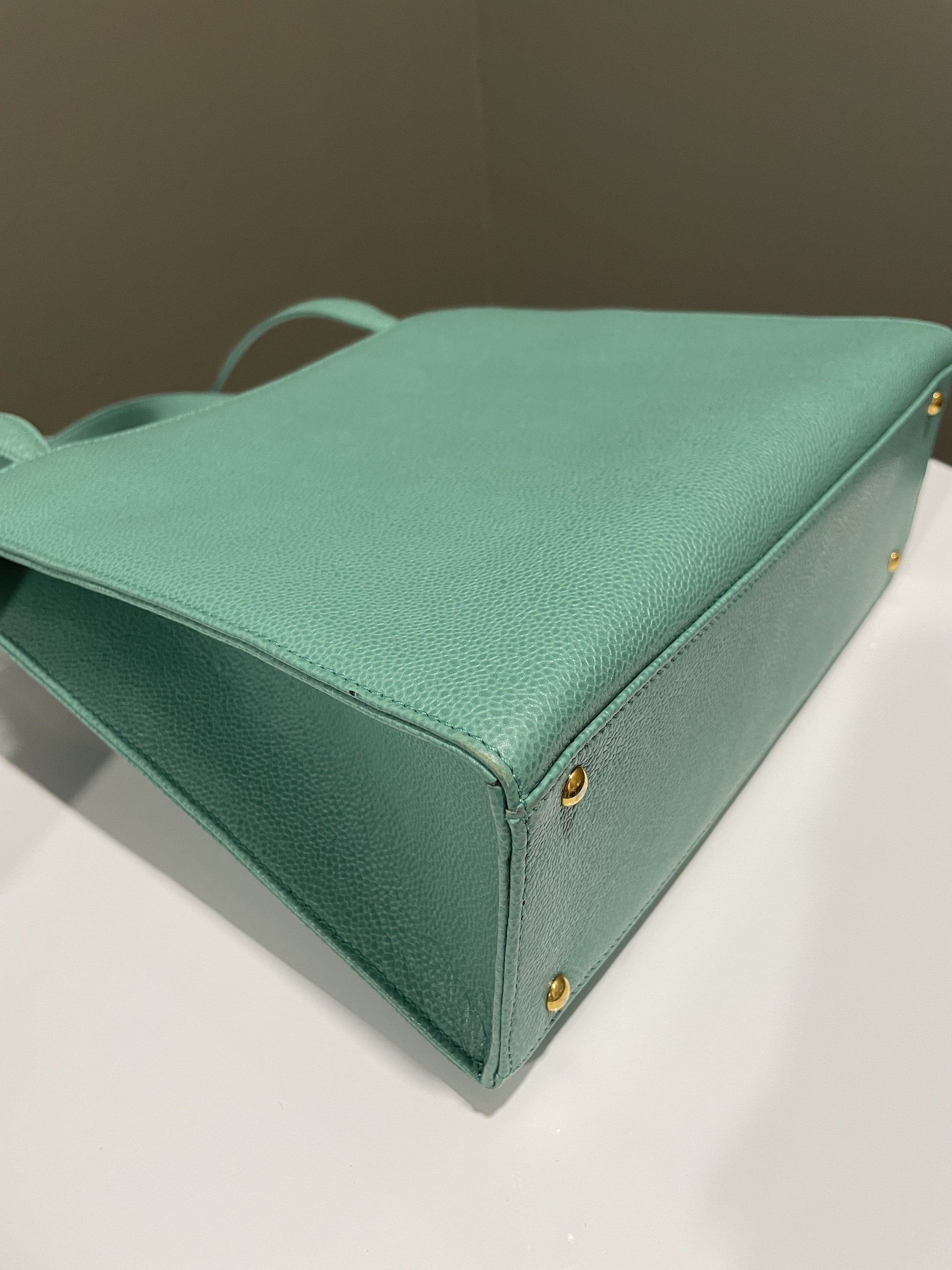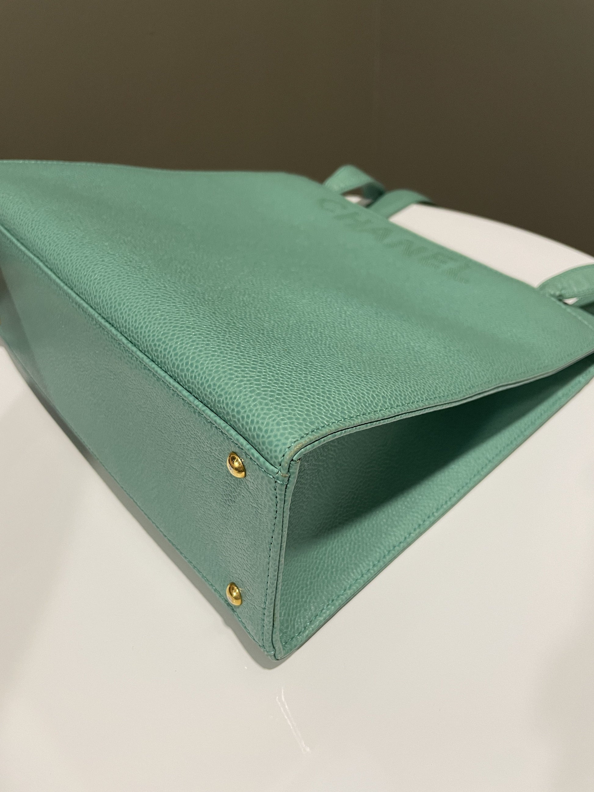 Chanel Vintage Shoulder Tote Bag Mint Caviar