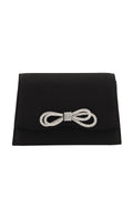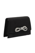 This black clutch is made with the lustrous satin, having embellishment of a sparkling bow at front and that is made with flap over style.