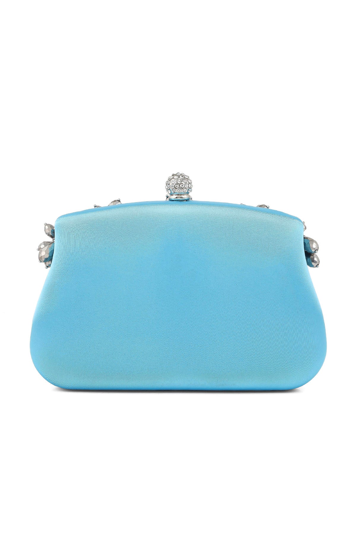 This blue clutch is made with the lustrous satin, keeping the simple aesthetics in consideration, it was adorned with a big motif at front.