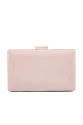 This pink clutch is made with the recangular frame, having leather overall and then set over a clasp lock at front.