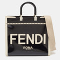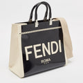 Fendi Black/off White Canvas And Patent Leather Medium Sunshine Shopper Tote