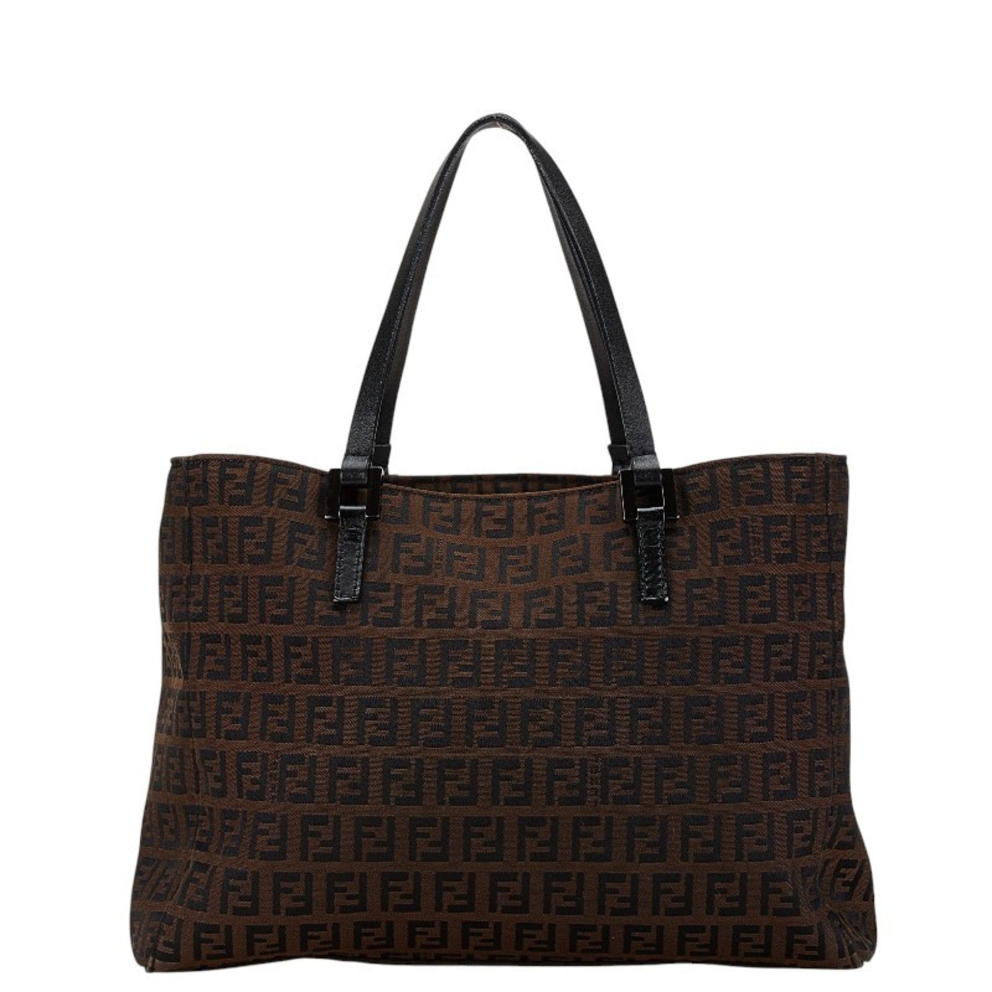 Brand - Fendi, Color - Black, Brown, Material - Canvas, Leather, Dimensions - 21cm x 26cm x 7cm / 8.26'' x 10.23'' x 2.75'', Condition - Rank AB. Rank AB New- Traces of usage, New / dirt can be seen but generally in New condition. Before purchasing, please refer to the images for the exact condition of the item. Before purchasing, please refer to the images of the accessories included with the item. Damage Ranking - Slight Size - One Size