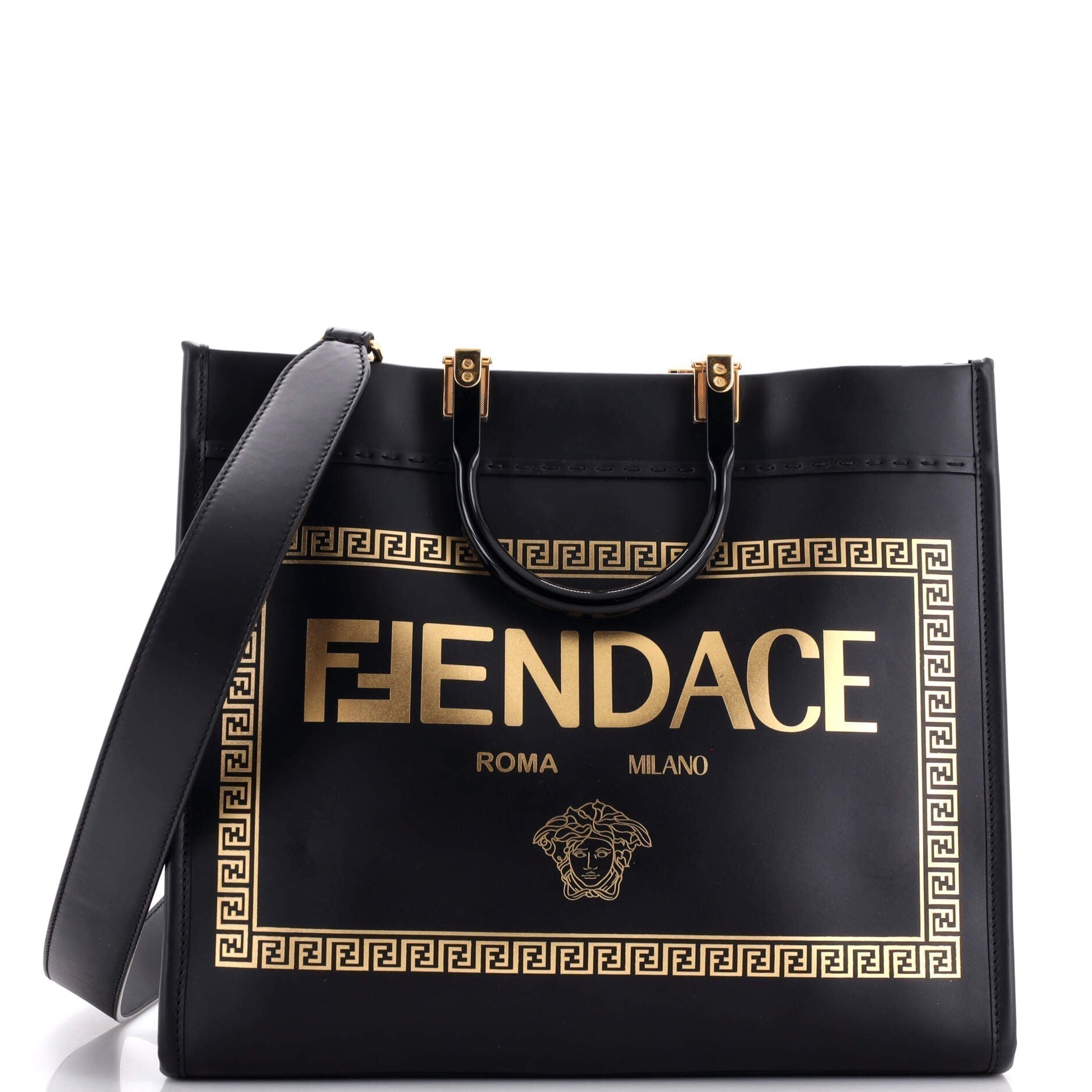FENDI x Versace Fendace Convertible Sunshine Shopper Tote Printed Leather Medium