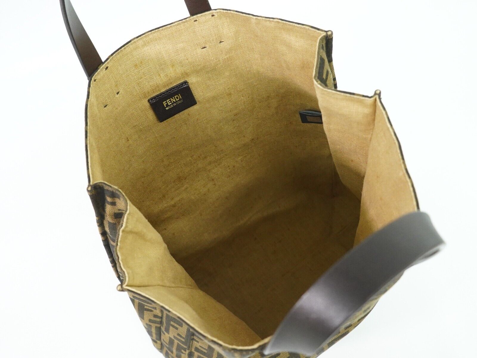 Brand - FendiModel - ZuccaColor - BrownMaterial - CanvasInclusions - /Dimensions - W 33 x H 36 x D 9 cmSerial number - 138/2305Country of origin - ItalieCondition - AB - New condition.This Fendi handbag, in the classic Zucca canvas pattern, offers a blend of style and functionality. Crafted from durable brown canvas with gold hardware, this tote is perfect for casual New. The bag features a spacious interior with no separate pockets, making it ideal for carrying essentials.The exterior has a slightly loose shape and minor rubbing. The interior displays overall rubbing and some stains. The handle shows slight rubbing and wrinkles. A light storage odor is present.We recommend that you look at all the photos before making your purchase to ensure that you are satisfied with the condition of the item.Size - One Size