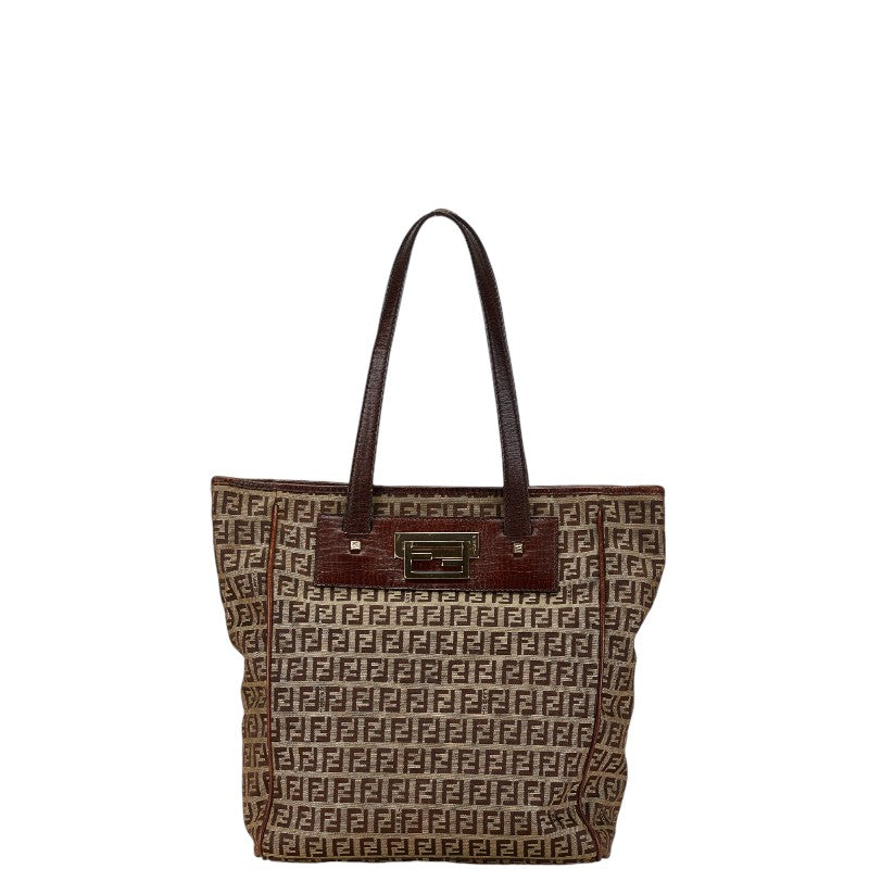 Fendi Zucchino Canvas Leather Tote Bag