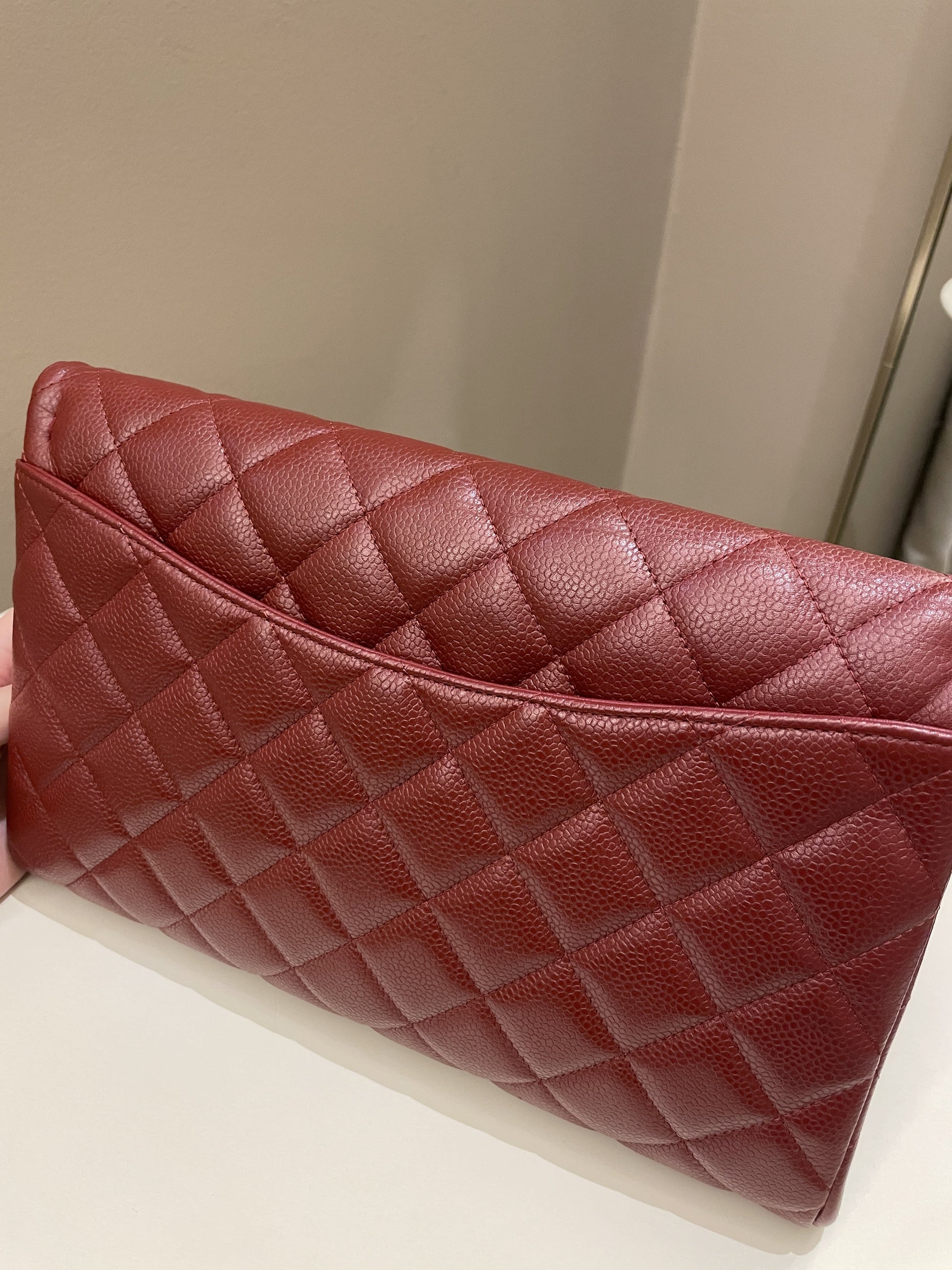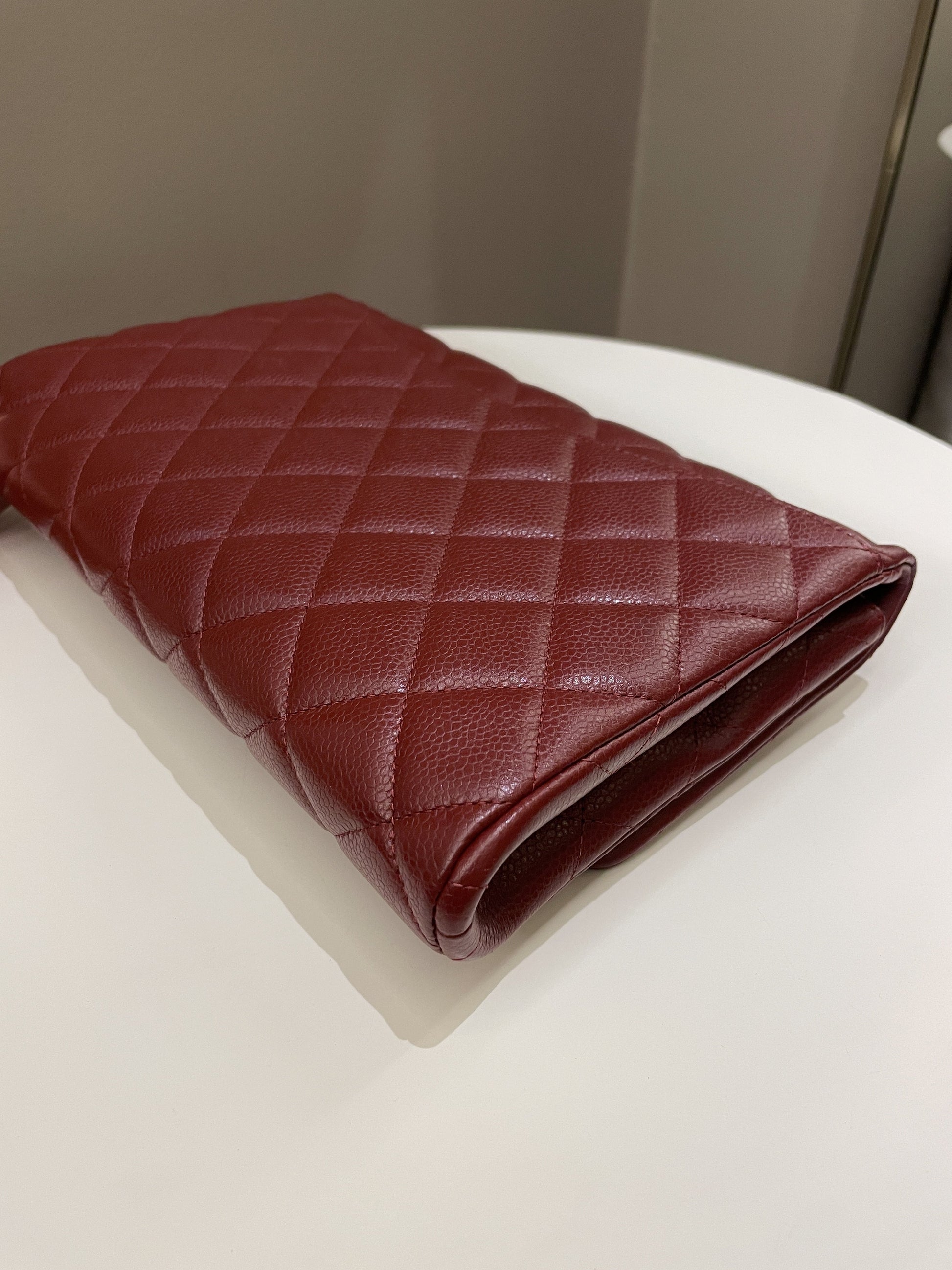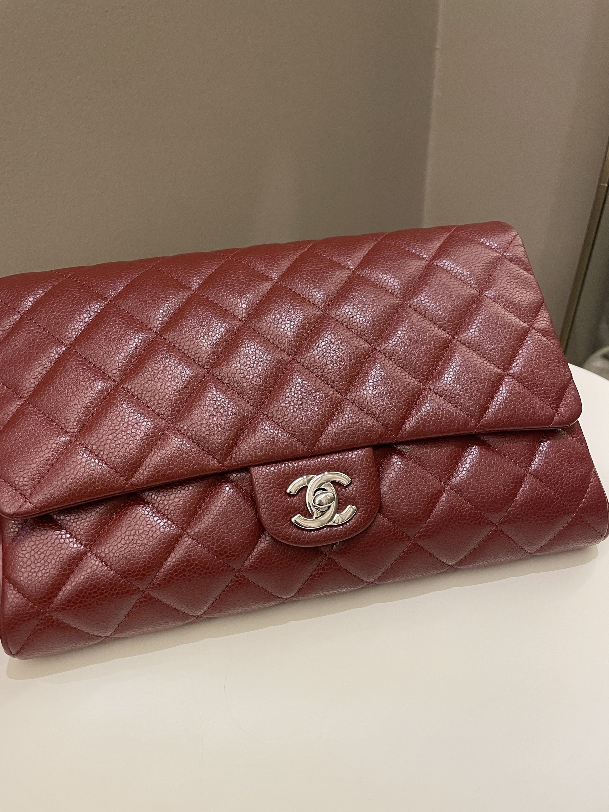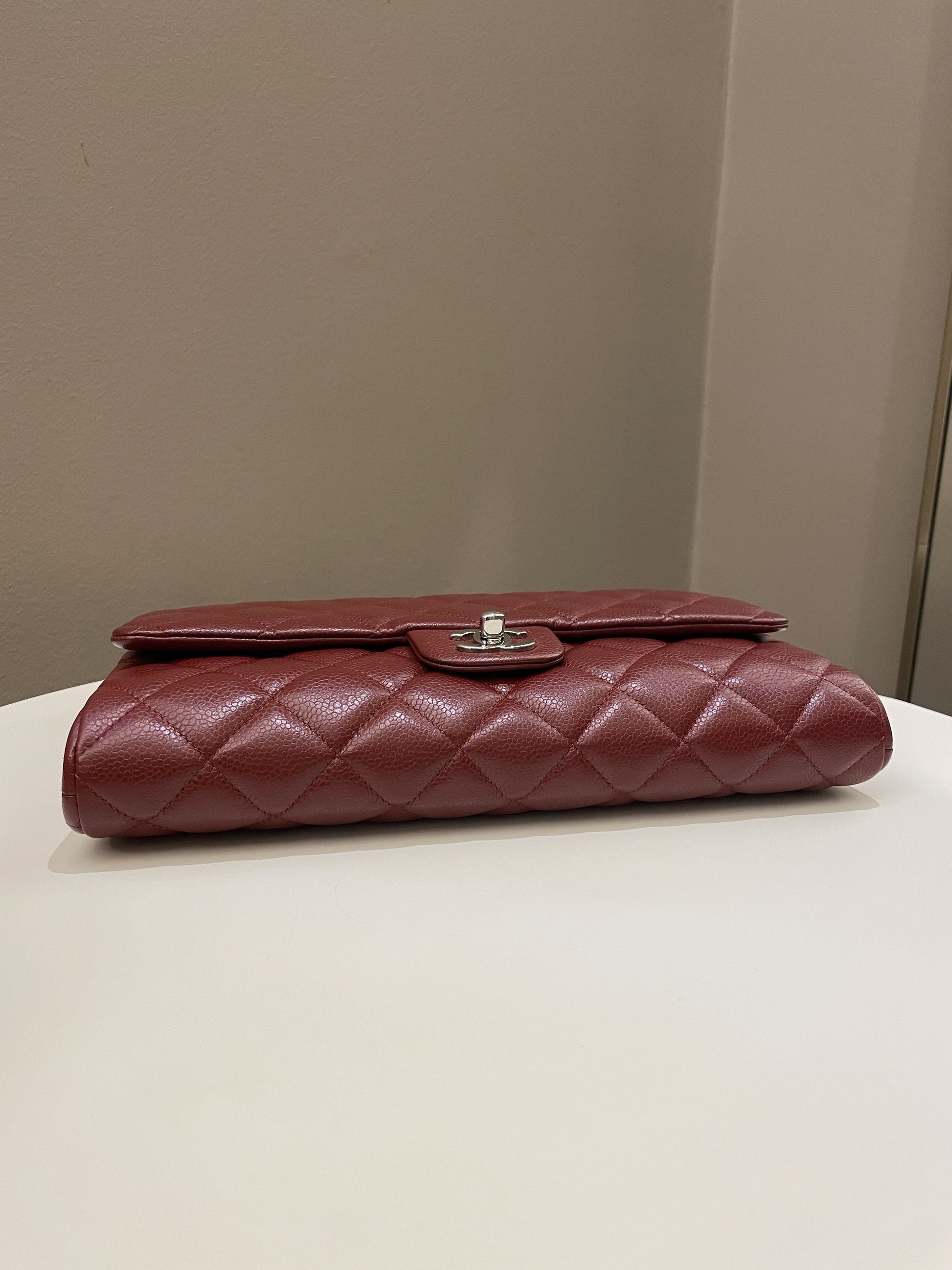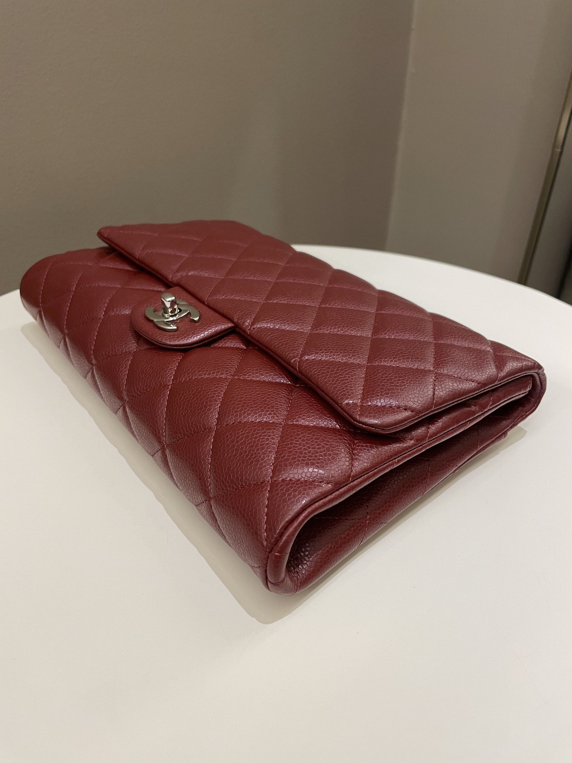 Chanel Quilted Timeless Flap Clutch Bag Burgundy Caviar