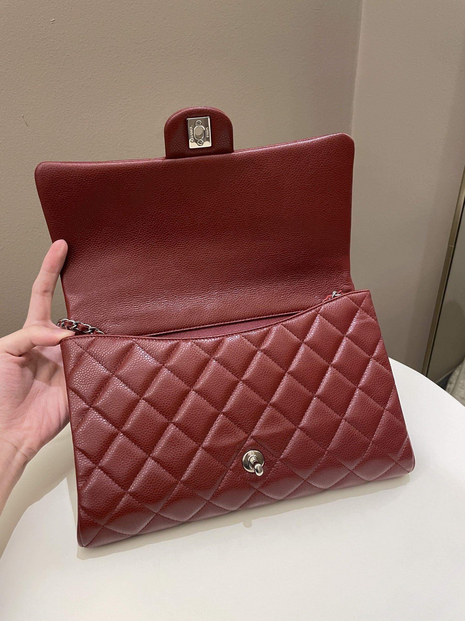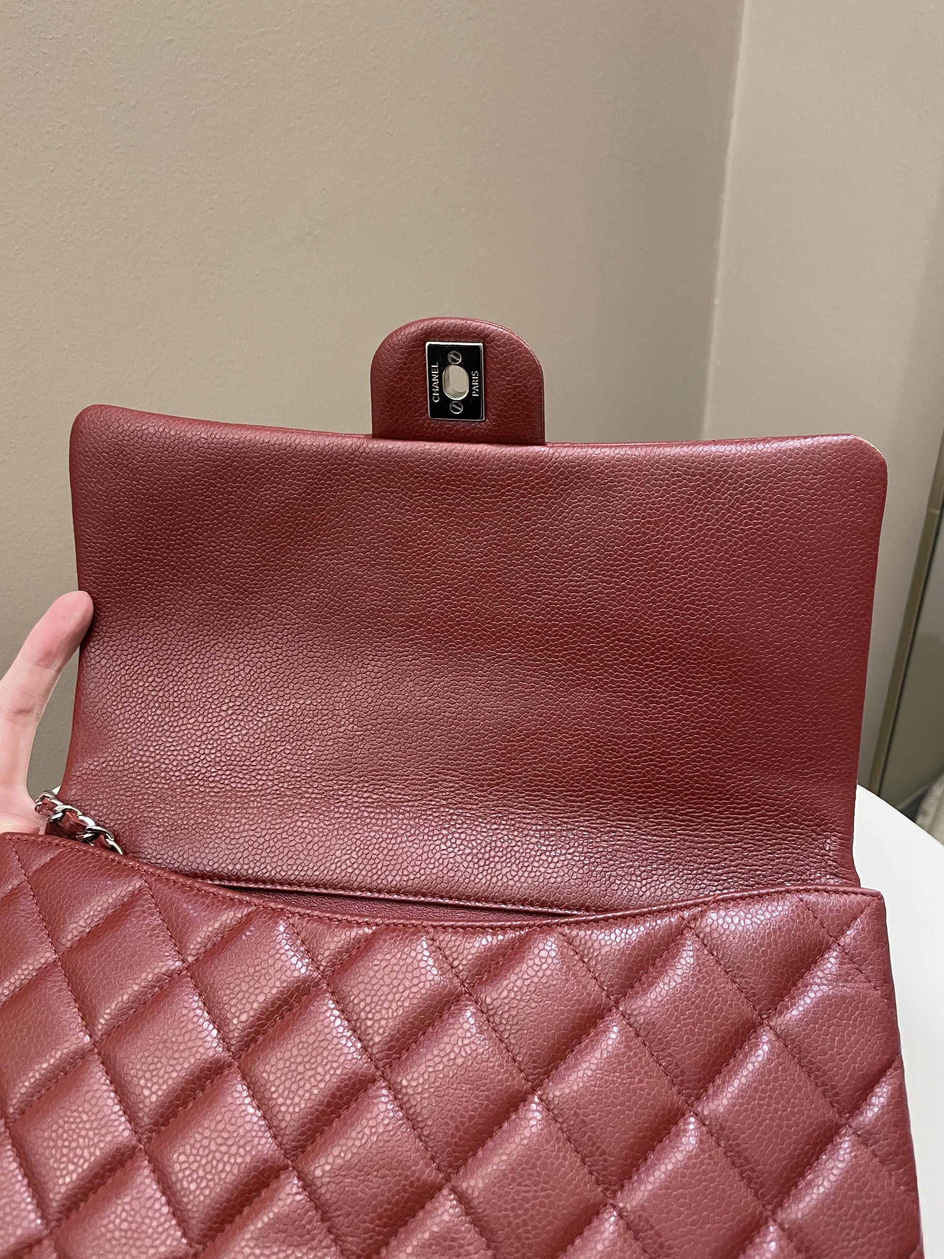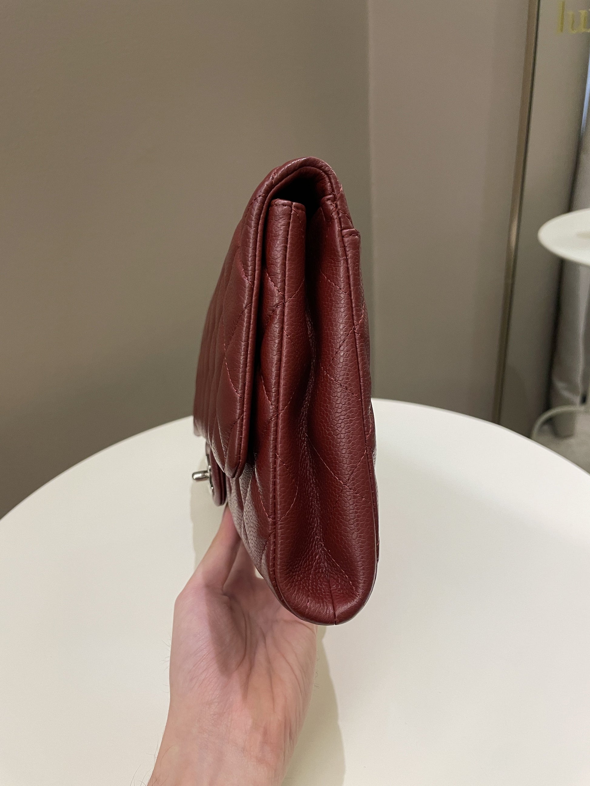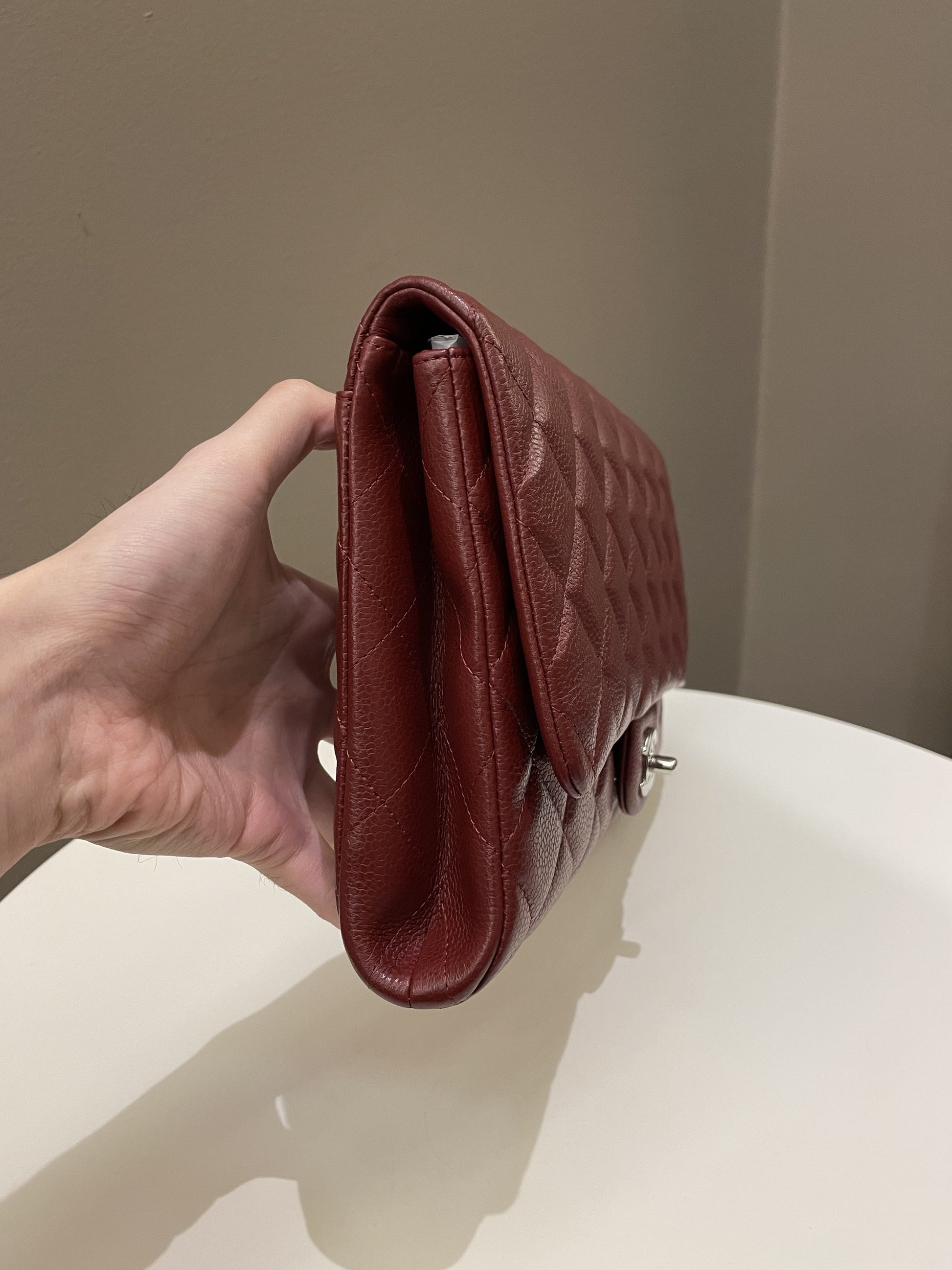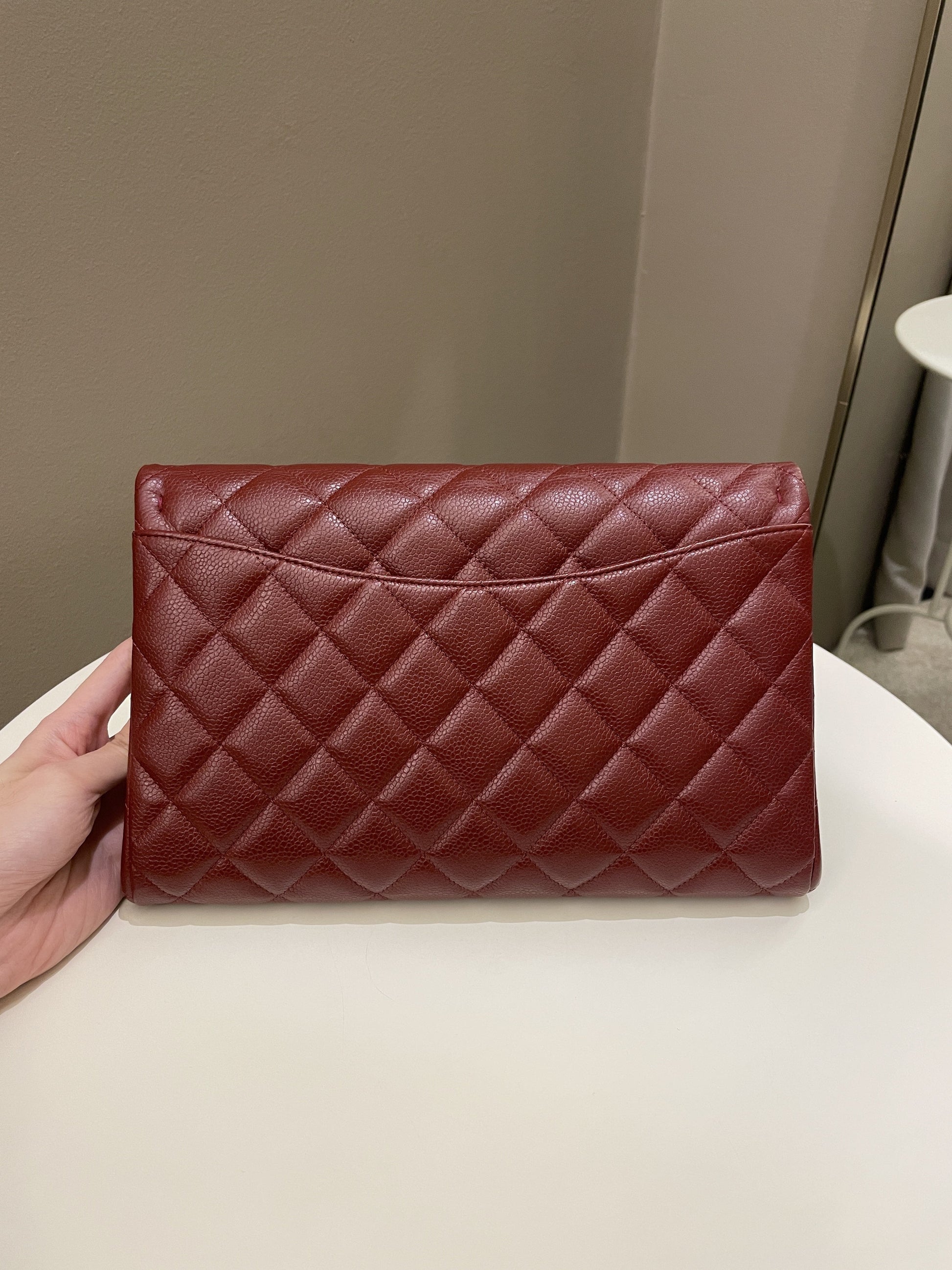 Chanel Quilted Timeless Flap Clutch Bag Burgundy Caviar