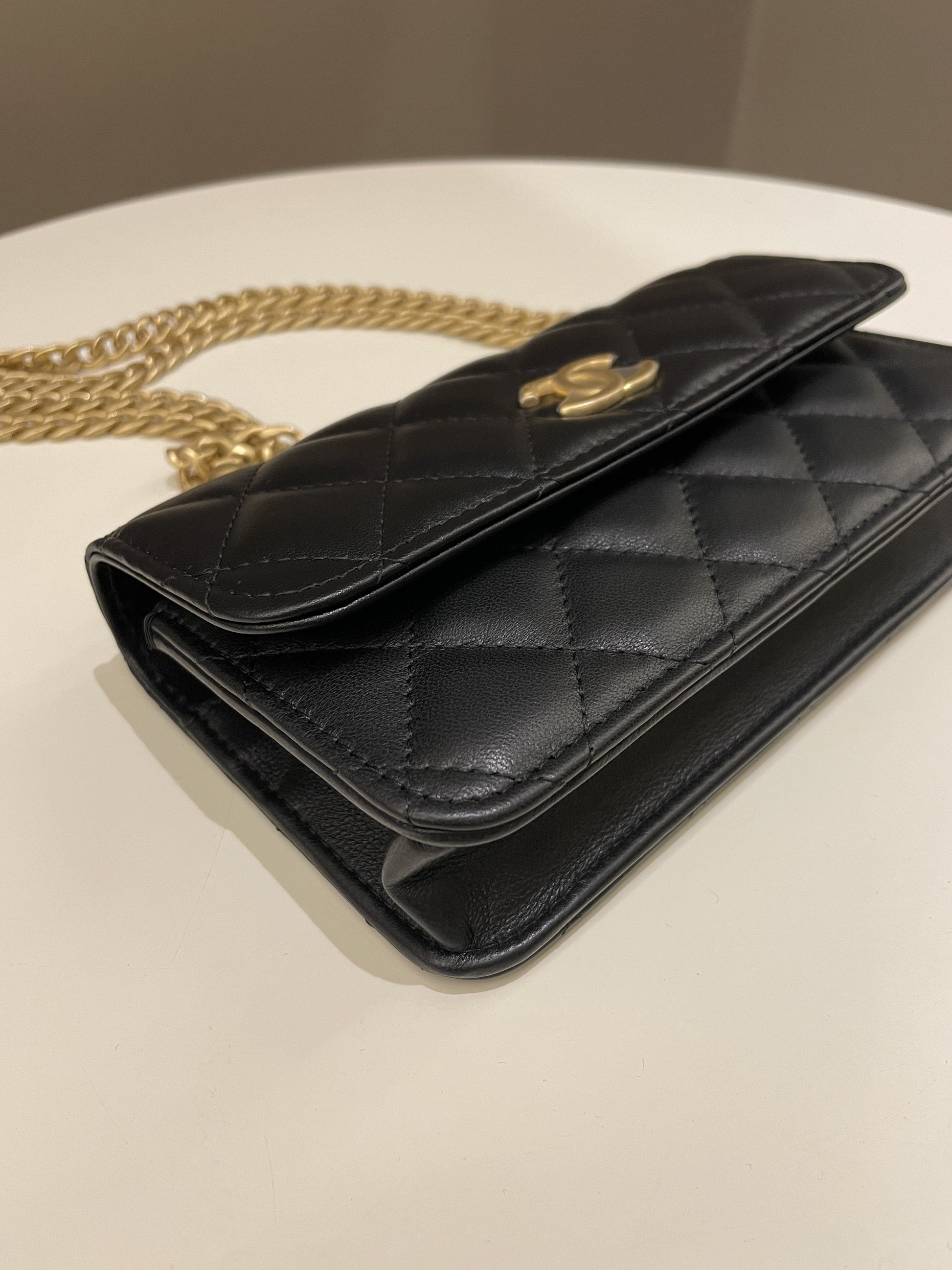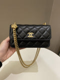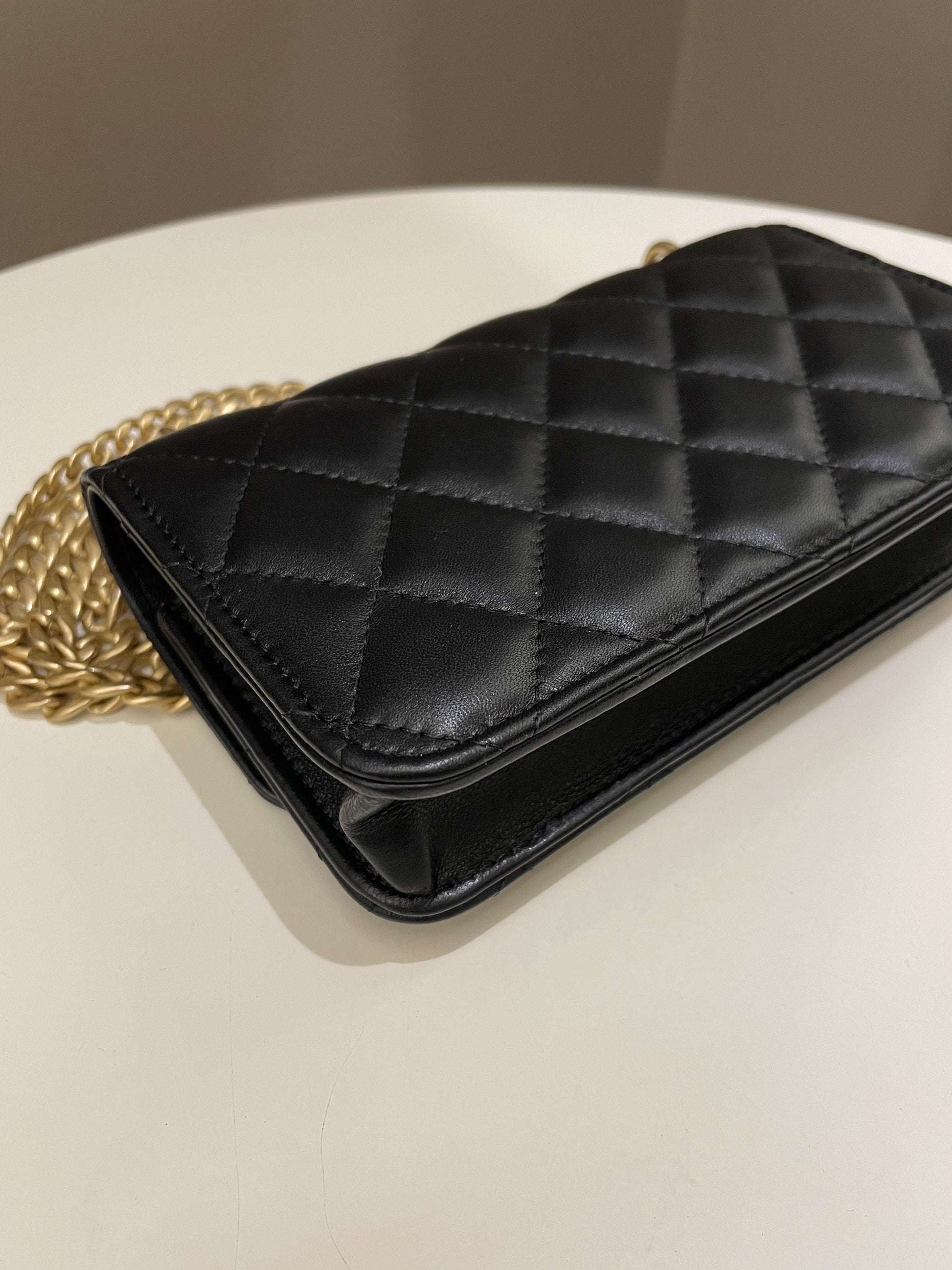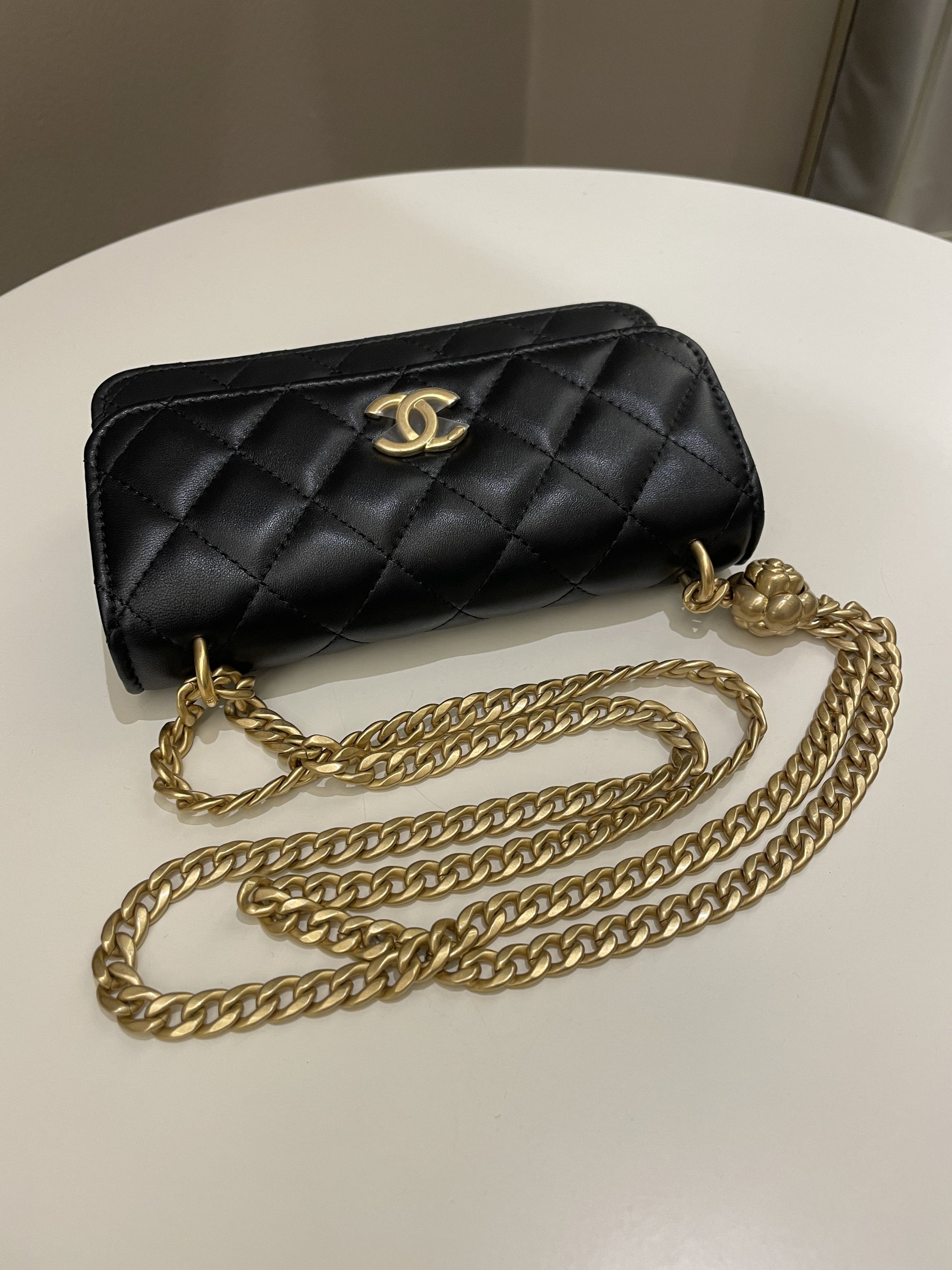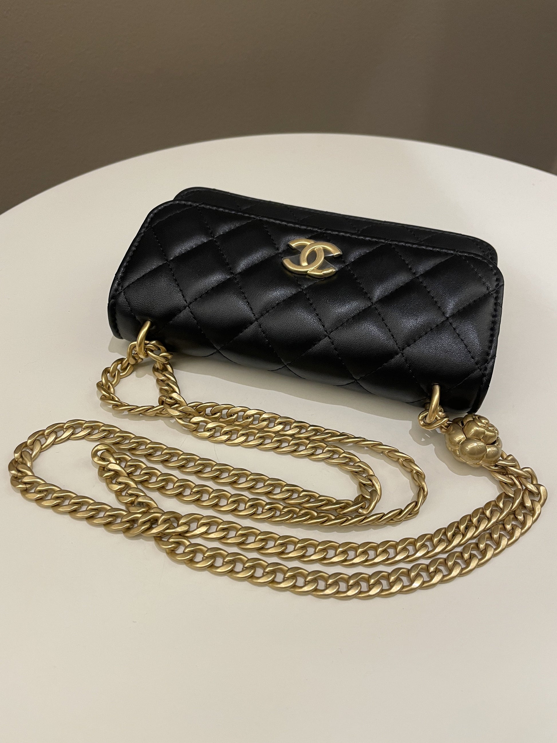 Chanel Camellia Pearl Crush Clutch on Chain Black