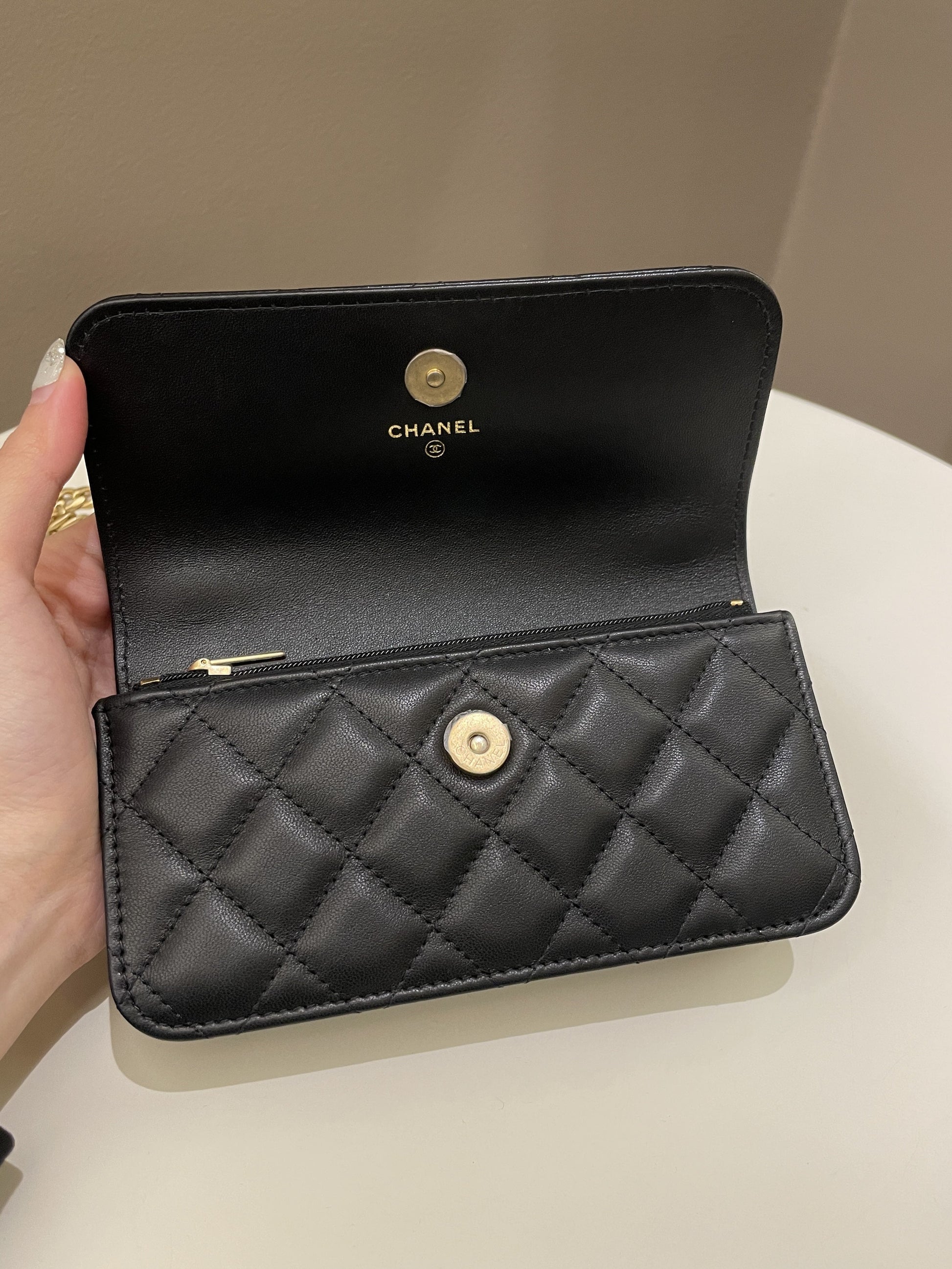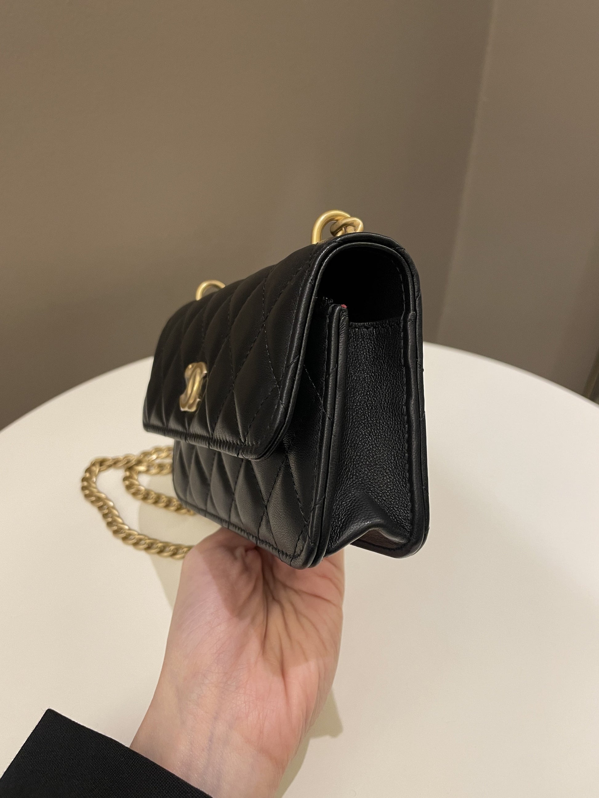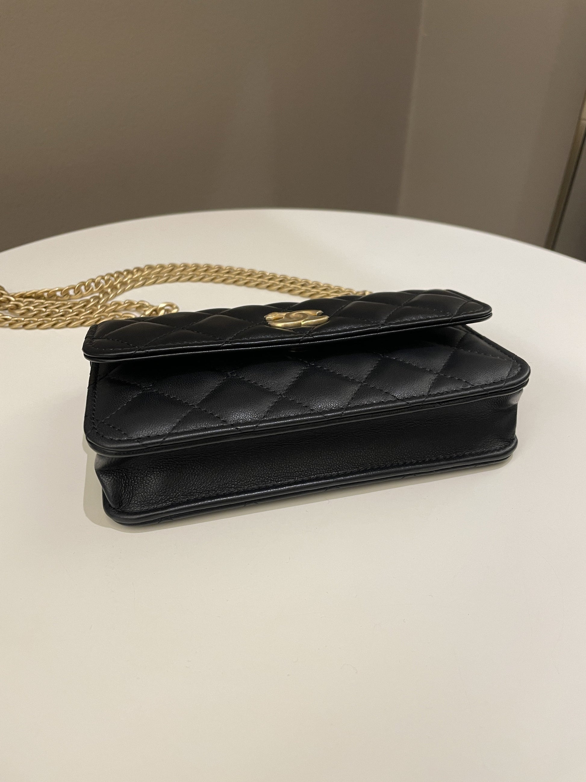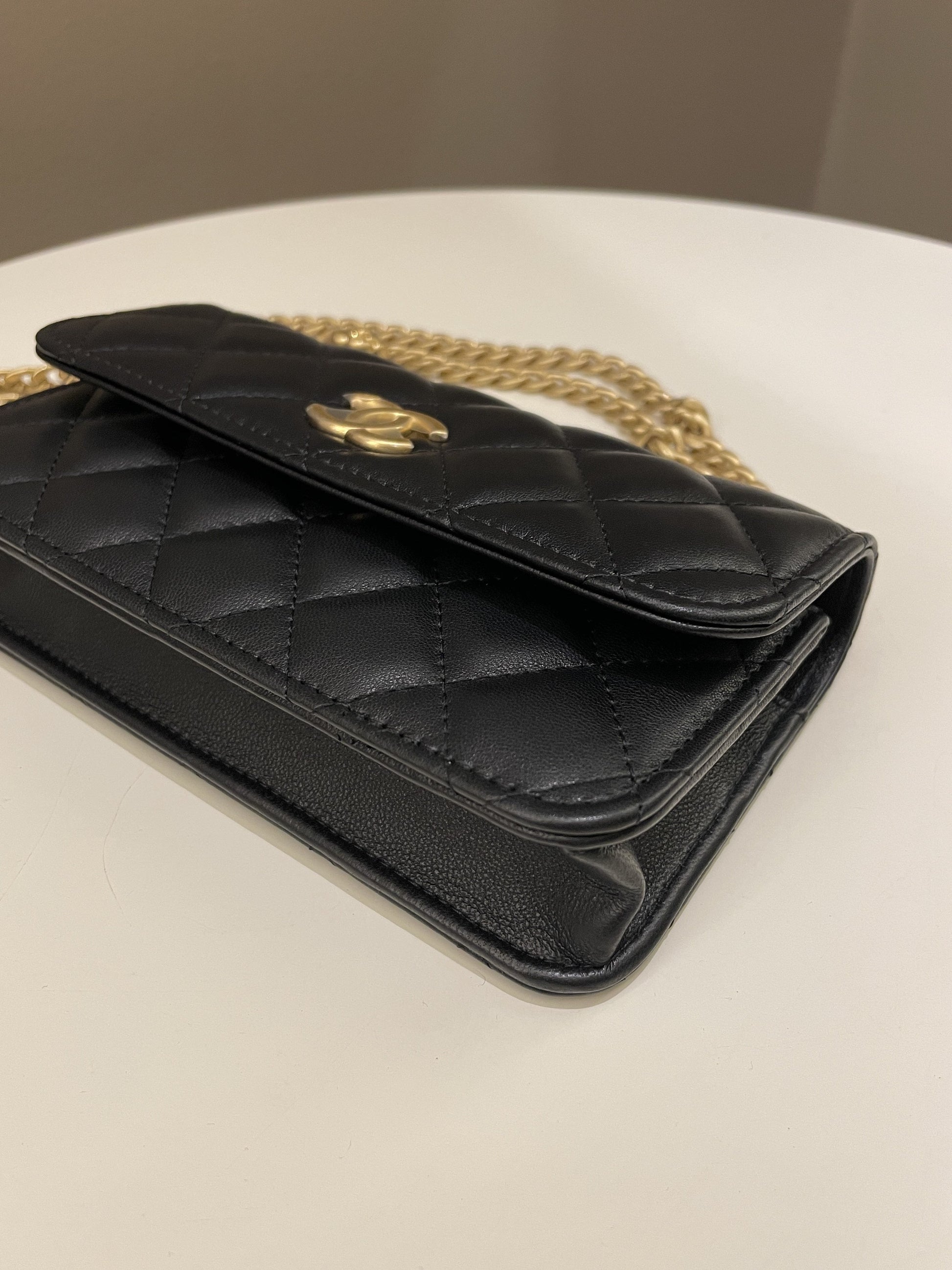 Chanel Camellia Pearl Crush Clutch on Chain Black